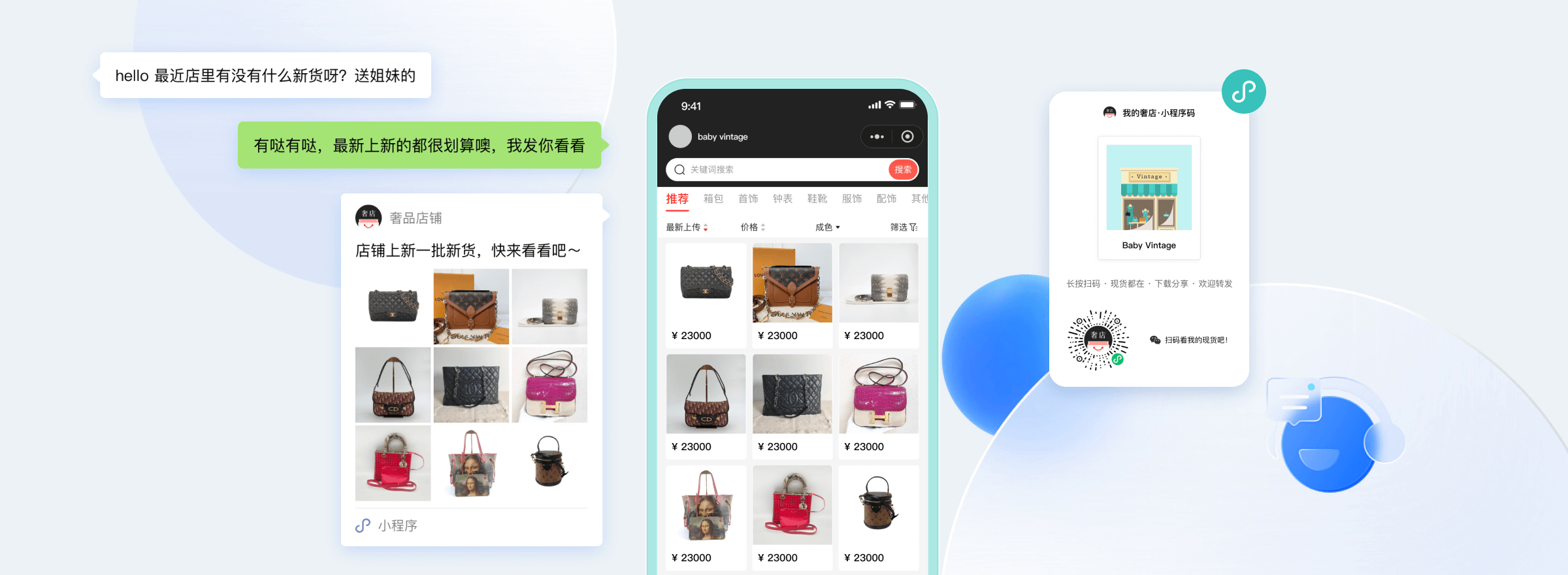 一键免费开通店铺小程序。24H店铺不打烊,客户随时随地查看店铺货品,帮您搭建自己的私域流量池